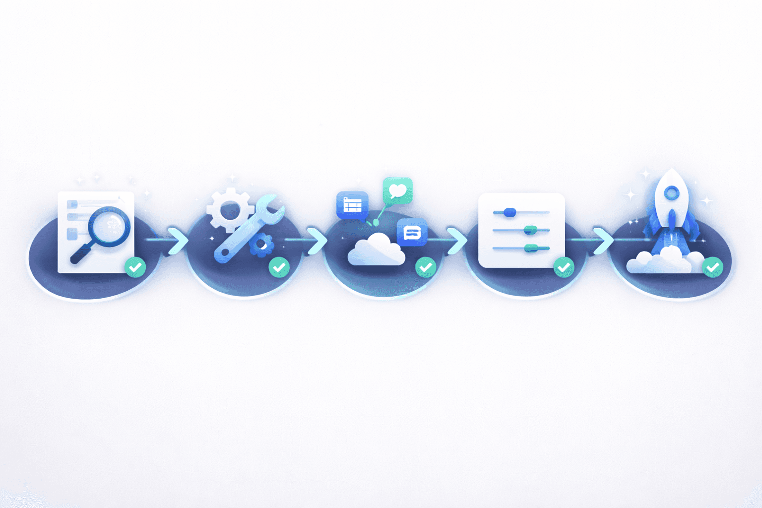 Step 3 — Integrations: We connect core systems like email and calendar with your oversight—producing a live data flow for daily activity.